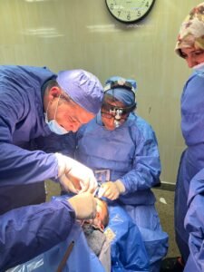 ضم الفريق الجراحي من قسم العيون الدكتور الأحمدي السمان، والدكتور عمرو منير ، والدكتور إسلام عوني، والدكتور هيثم رشدان والأطباء إسراء أحمد، وسارة أحمد، وأحمد حلمي، وأحمد حمدي، ويونس شعبان، والسيد محمد، وكرلس ناصر ،وفريق التخدير الاطباء شريف صلاح، وميرل نصرى، وعبدالله طارق، وأحمد رشدي ، ونورهان عادل وأمنية عادل، وأحمد عنبر، وأحمد مدحت، وفريق التمريض أمينه أحمد، وسماح أحمد، وسمر نظير، وأسماء ممدوح، وجيهان عبد الرؤوف، وخطاب محمود، ومصطفى خلف.