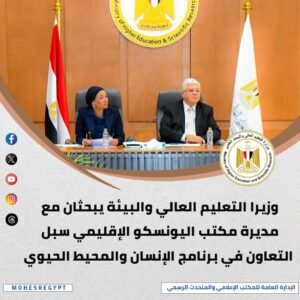 اجتماع مشترك مع وزيرة البيئة ومديرة مكتب اليونسكو لبحث تعزيز التعاون في برنامج “الإنسان والمحيط الحيوي”، وتطوير مفهوم “الجيوبارك” لدعم المجتمعات المحلية.