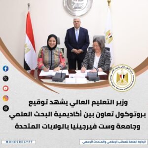 7. اتفاقية بحثية مع جامعة وست فيرجينيا الأمريكية