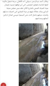 بخصوص شكوى أهالي البداري من غرق أحد الشوارع خلف مبنى مجلس المدينة بمياه الصرف الصحي أكد عبد الرؤوف النمر، رئيس مركز ومدينة البداري، أنه جارى نقل المياه من الغرف قبل العطل الخاص بأحد الشوارع التي تعرضت للغرق جراء الصرف الصحي، وذلك باستخدام بدالة وماتور غاطس، بمعرفة مقاول التنفيذ.