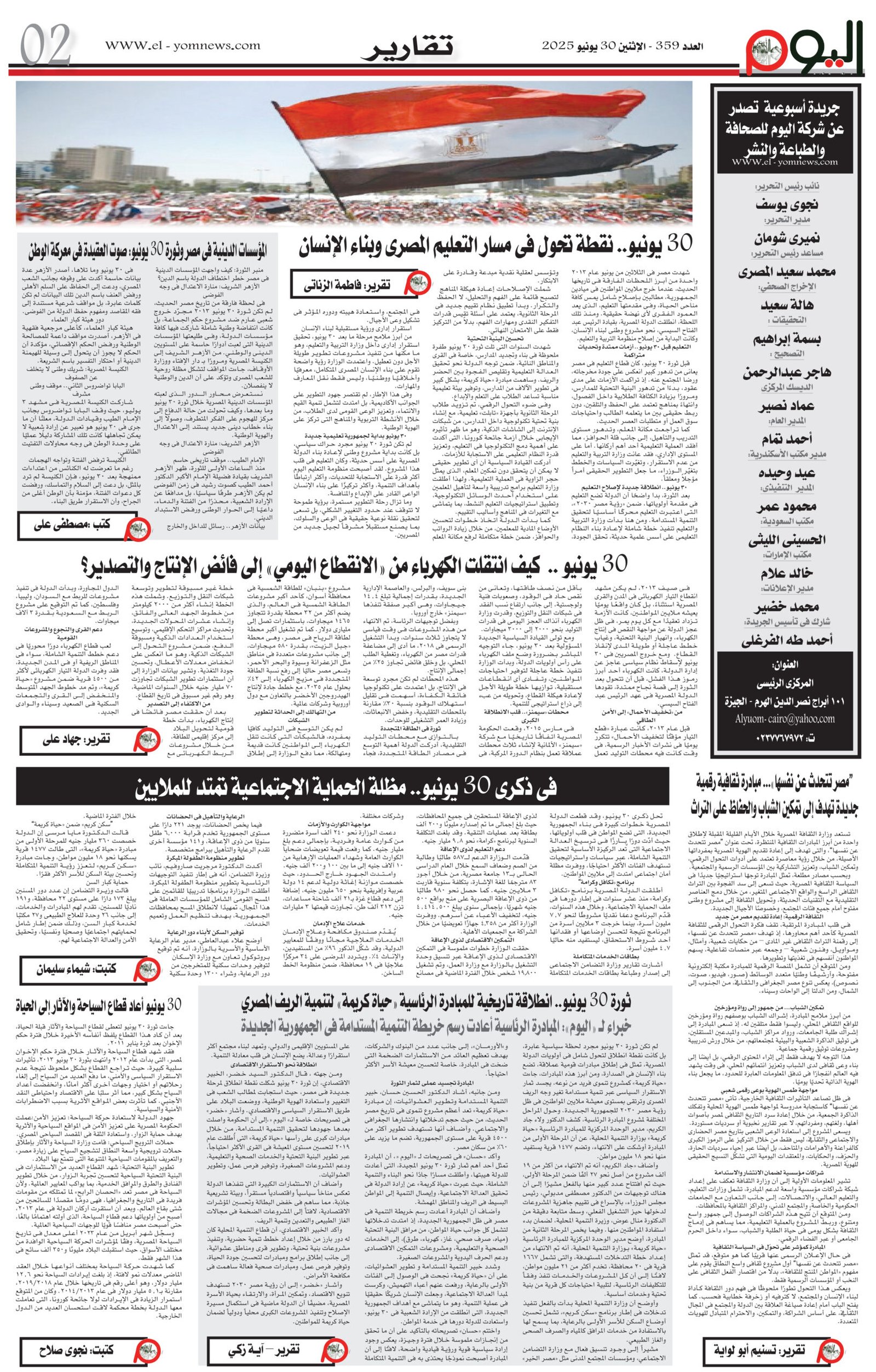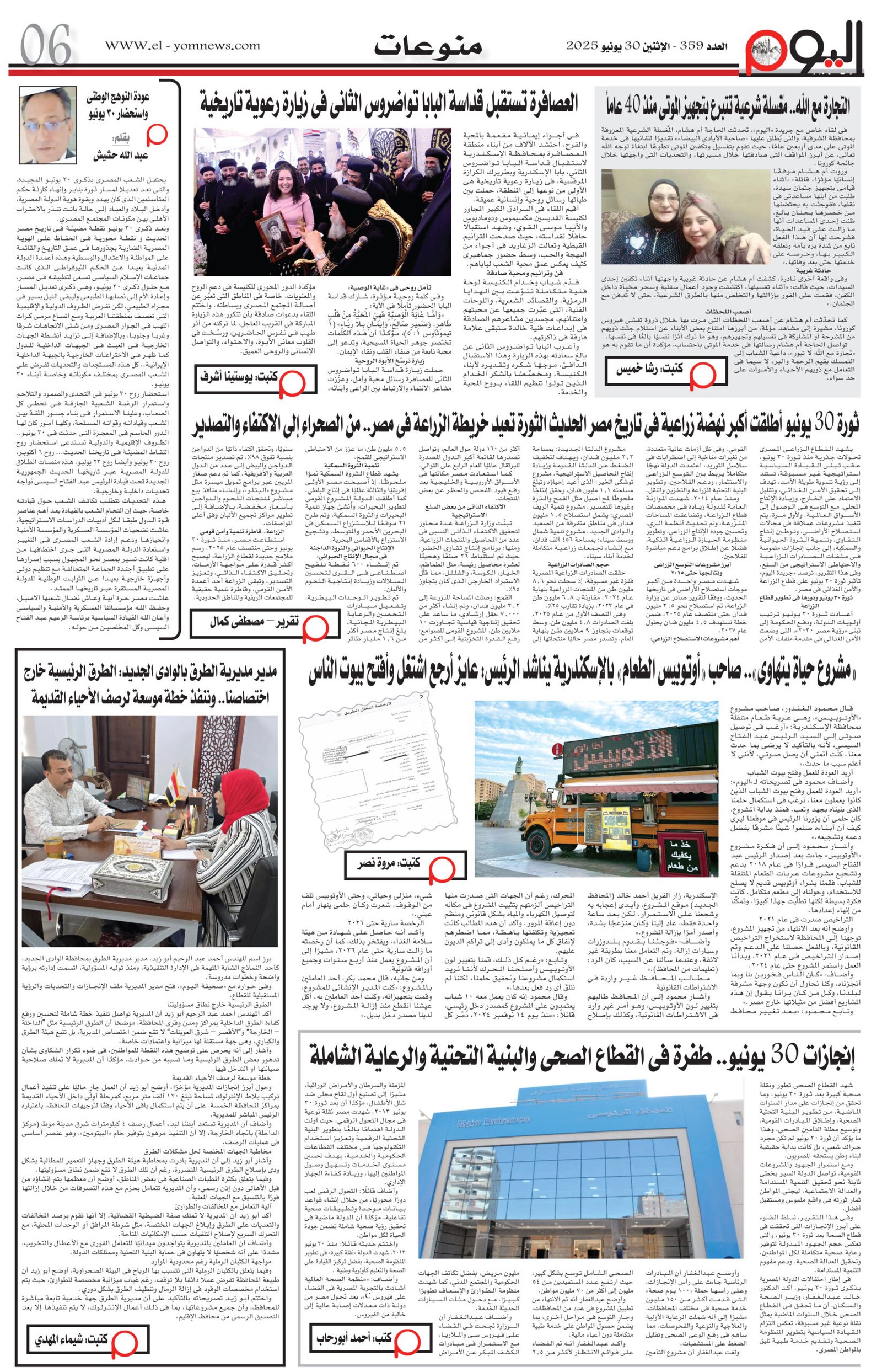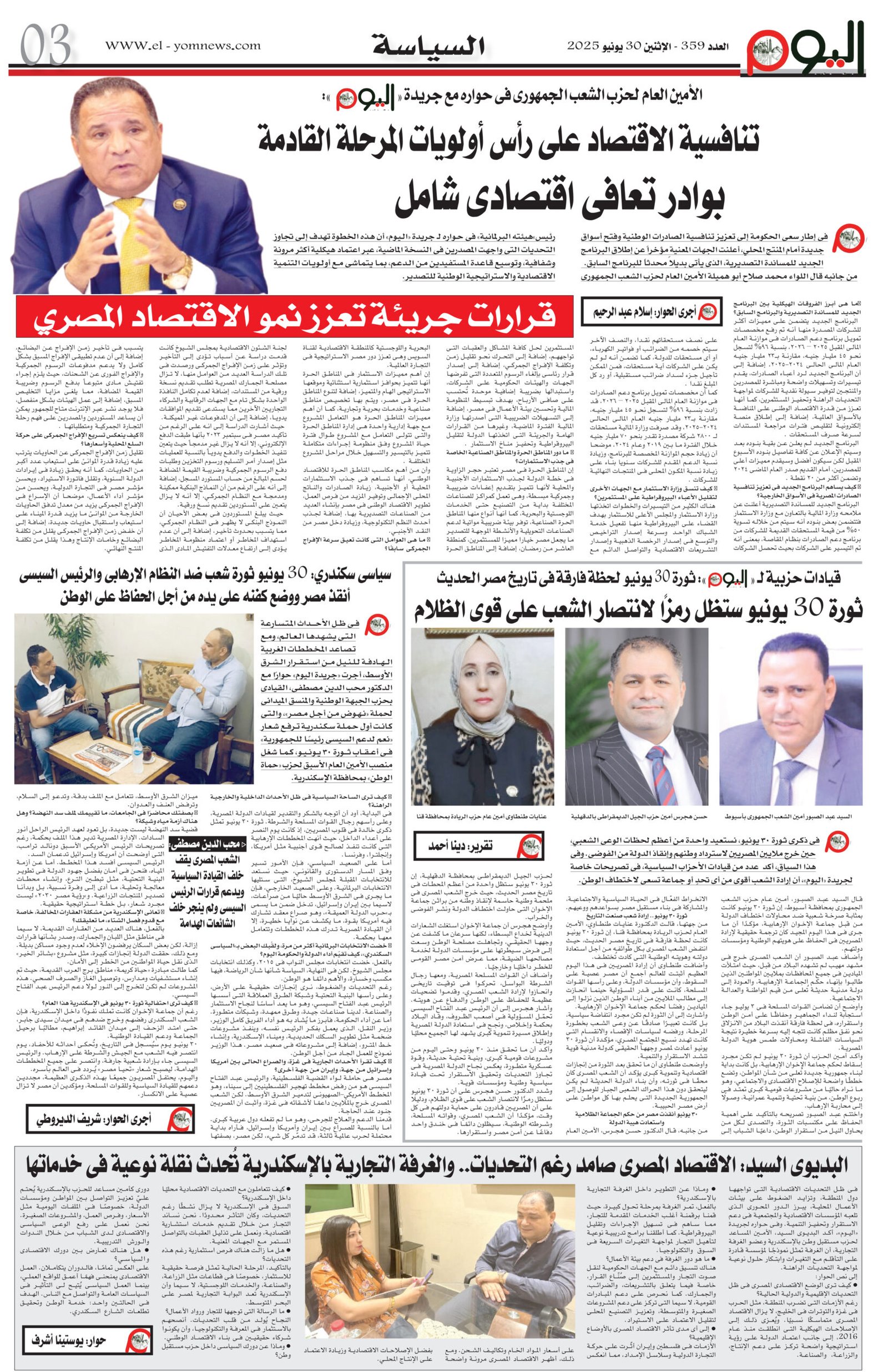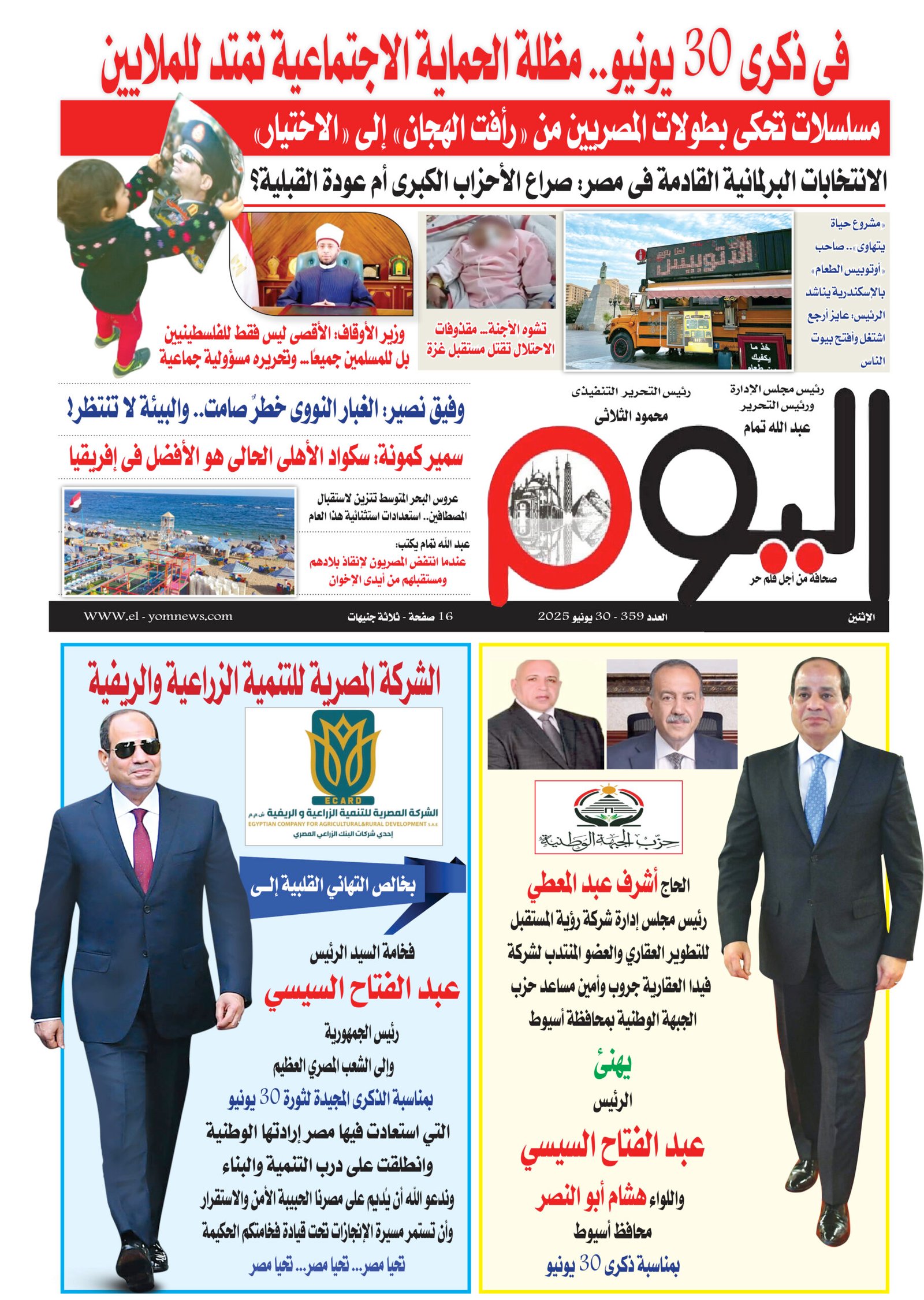 العدد الورقي لجريدة اليوم عدد 30 يونيو