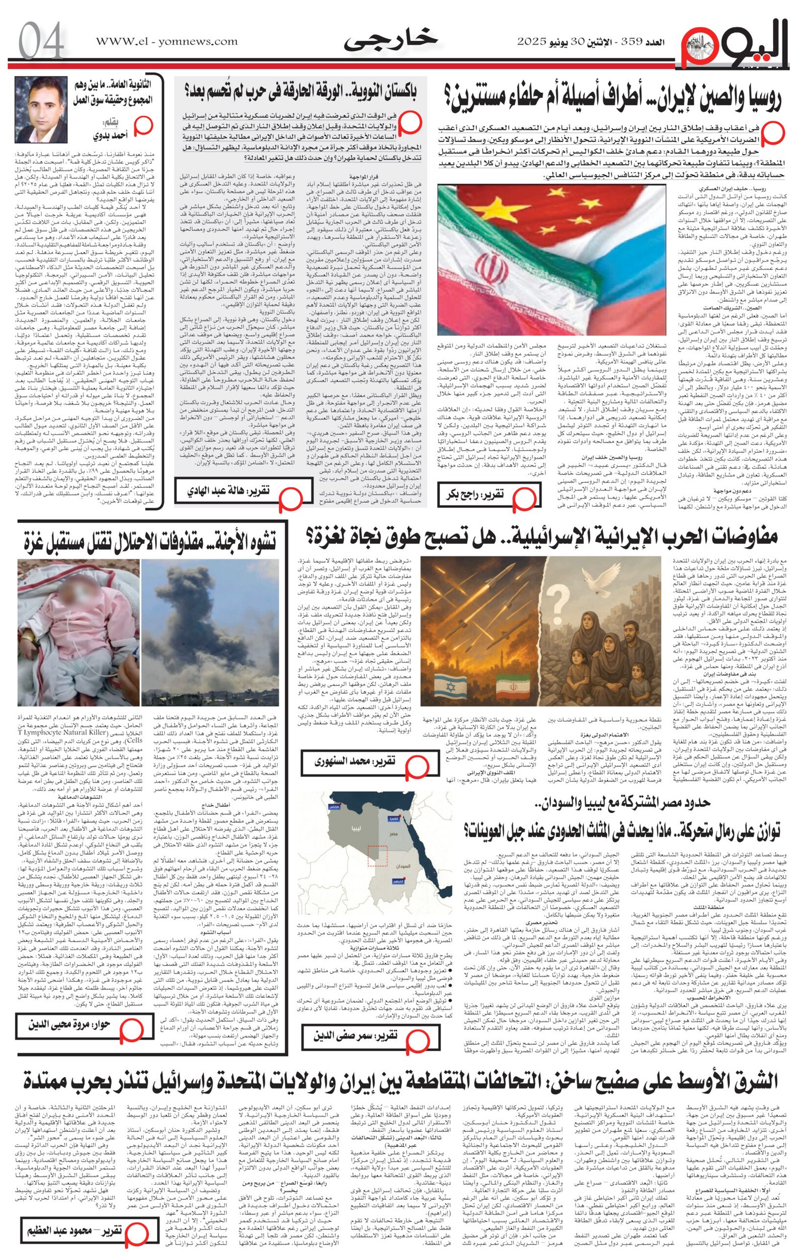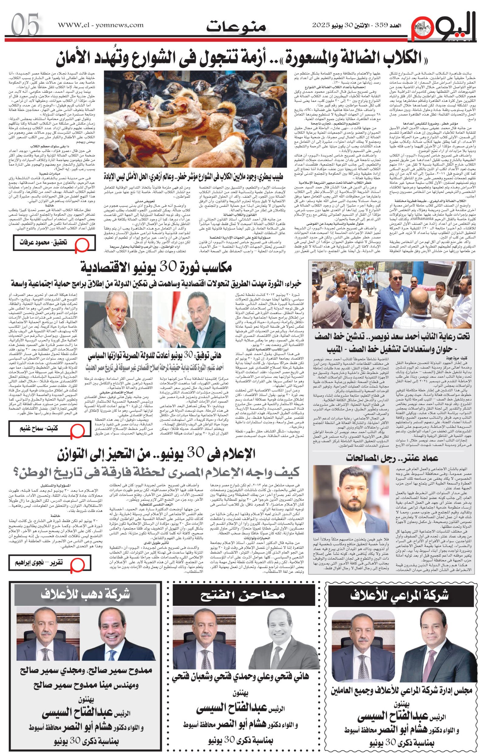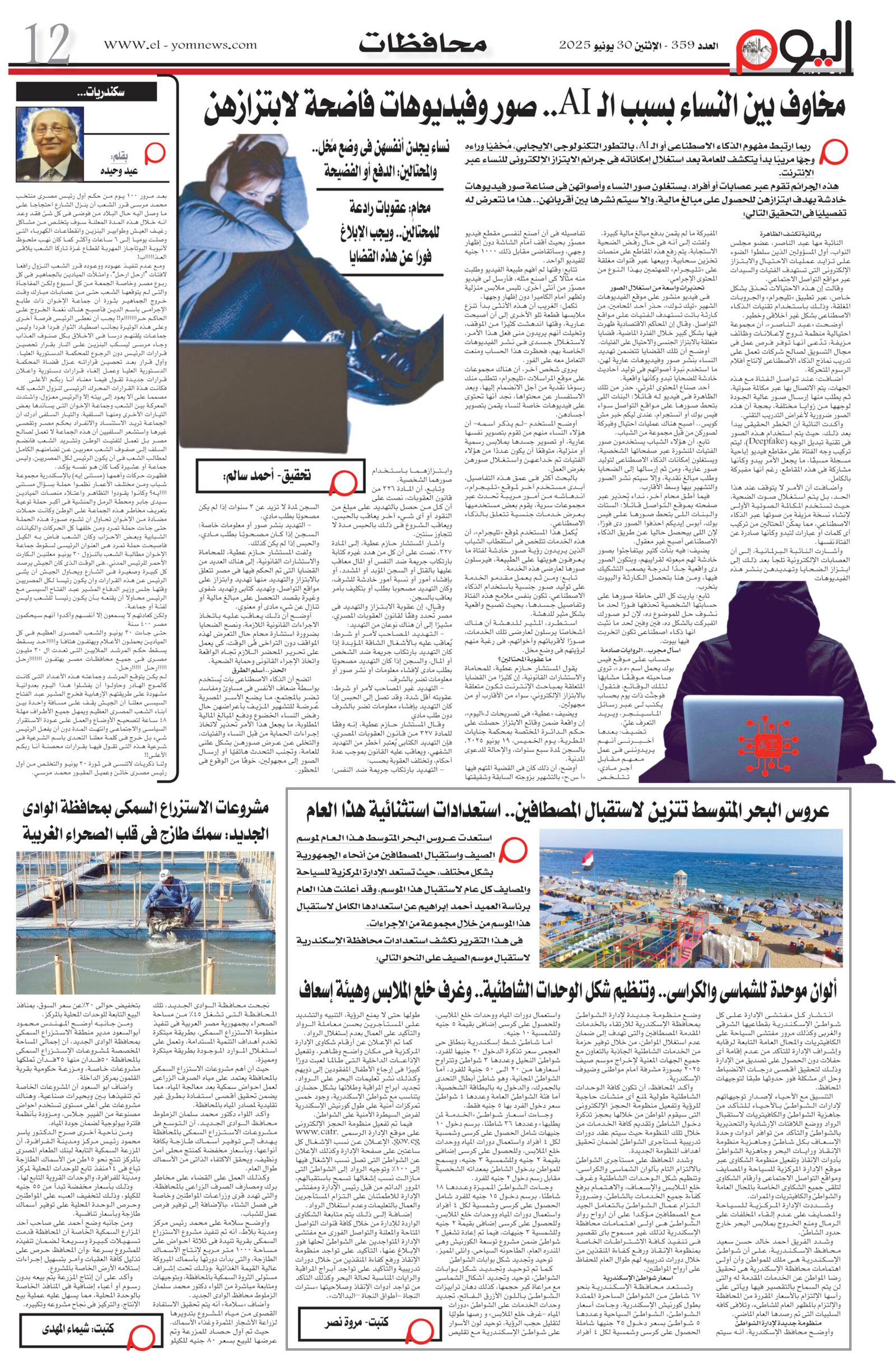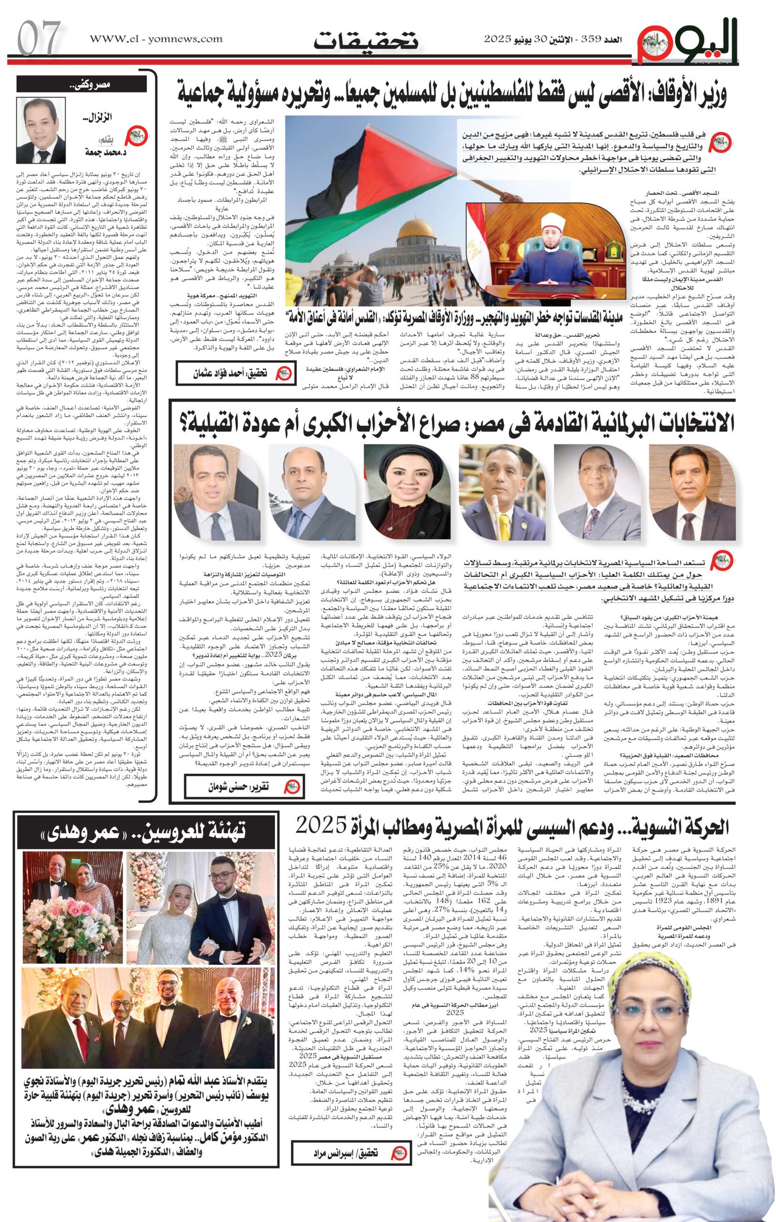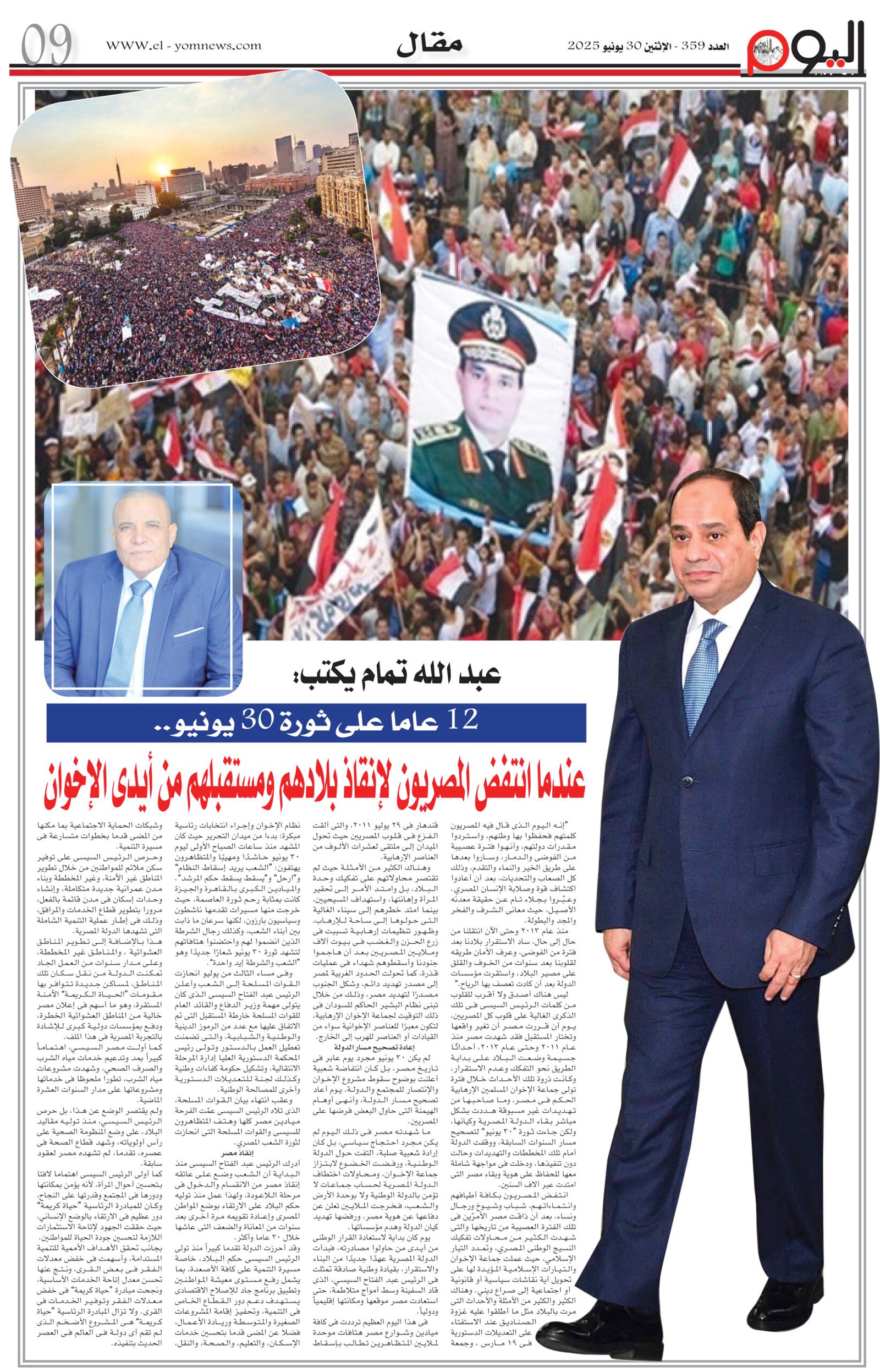 العدد الورقي لجريدة اليوم عدد 30 يونيو