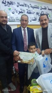 افتتحت الاحتفالية بعزف السلام الوطني لجمهورية مصر العربية، أعقبته تلاوة عطرة لآيات الذكر الكريم على يد القارئ الشيخ علي محمد أغا، وسط أجواء روحانية مميزة. وشملت مراسم التكريم المئات من الأطفال والشباب الذين أتموا حفظ أجزاء من القرآن الكريم وحتى حفظه كاملاً، حيث منحت لهم شهادات تقدير وجوائز عينية ومبالغ مالية، وسط فرحة كبيرة من الحضور وأولياء الأمور.