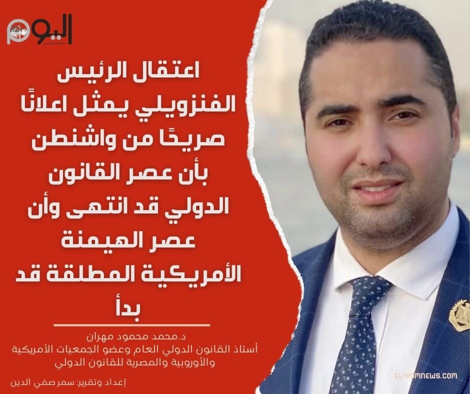 في هذا الصدد،علق الدكتور محمد محمود مهران، أستاذ القانون الدولي العام وعضو الجمعيات الأمريكية والأوروبية والمصرية للقانون الدولي. على العملية قائلاً إن ما جرى يمثل اختبارًا صارخًا لقواعد القانون الدولي. مشيرًا إلى أن اعتقال رئيس دولة قائمة أثناء ممارسة السلطة يعد خرقًا واضحًا لمبدأ الحصانة السيادية.