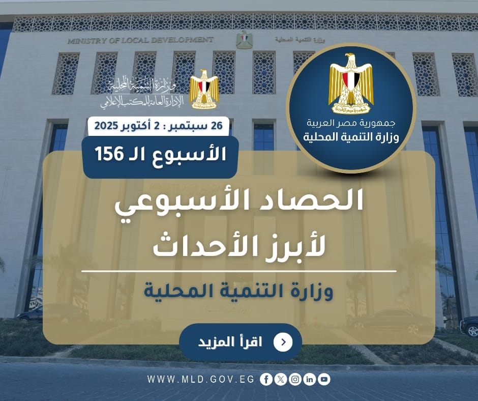 أصدر المركز الإعلامي لوزارة التنمية المحلية “الانفوجراف الأسبوعي” في نسخته الـ 156 حول أبرز أنشطة وفعاليات الوزارة بقيادة الدكتورة منال عوض وزيرة التنمية المحلية، حيث تضمن مجموعة من الفعاليات والاجتماعات ومتابعة المشروعات التنموية المهمة خلال الفترة (26 سبتمبر – 2 أكتوبر 2025).