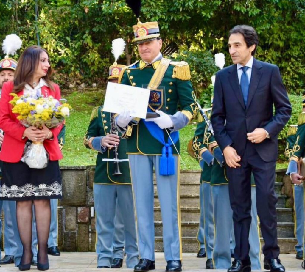 وفى الختام قدم سيادة السفير المصرى ومديرة الاكاديمية برفقة الجنرال ازارا شهادة تقدير ودرع الاكاديمية للمايسترو جروسو فى نهاية الحفل.