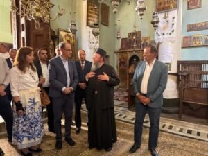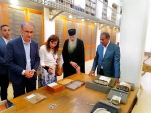 وكان في استقباله الدكتور جمال مصطفى، رئيس قطاع الآثار الإسلامية والقبطية واليهودية بالمجلس الأعلى للآثار، والأنيا ديميتري ديمانوس مطران دير سانت كاترين.