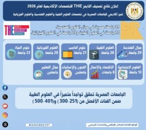 أعلن الدكتور أحمد المنشاوي، رئيس جامعة أسيوط، عن تحقيق جامعة أسيوط حضورًا متميزًا ضمن نتائج تصنيف التايمز للتعليم العالي للتخصصات الأكاديمية لعام 2026 (Times Higher Education World University Rankings by Subject)، حيث تم إدراج الجامعة في 6 مجالات علمية مختلفة، في تأكيد جديد على تطور أدائها الأكاديمي والبحثي وتنامي حضورها الدولي.
