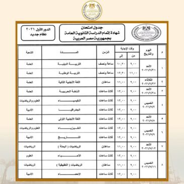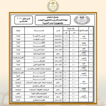 ويأتي إعلان الجداول بعد اعتمادها رسميًا من وزير التربية والتعليم، في إطار استعدادات الوزارة لتنظيم امتحانات الثانوية العامة، وتوفير الوقت الكافي للطلاب للمراجعة والاستعداد الجيد، بما يضمن سير الامتحانات في أجواء مستقرة ومنظمة على مستوى الجمهورية.