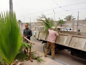 كما تم تقليم 7 أشجار بشارع 218 وتم رفع مخلفات التقليم.