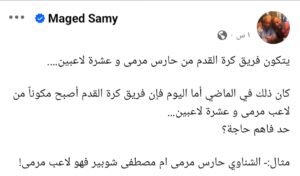 وأعطى رئيس مجلس إدارة نادي وادي دجلة مثالًا، وكتب: «مثال: الشناوي حارس مرمى أما مصطفى شوبير فهو لاعب مرمى!».