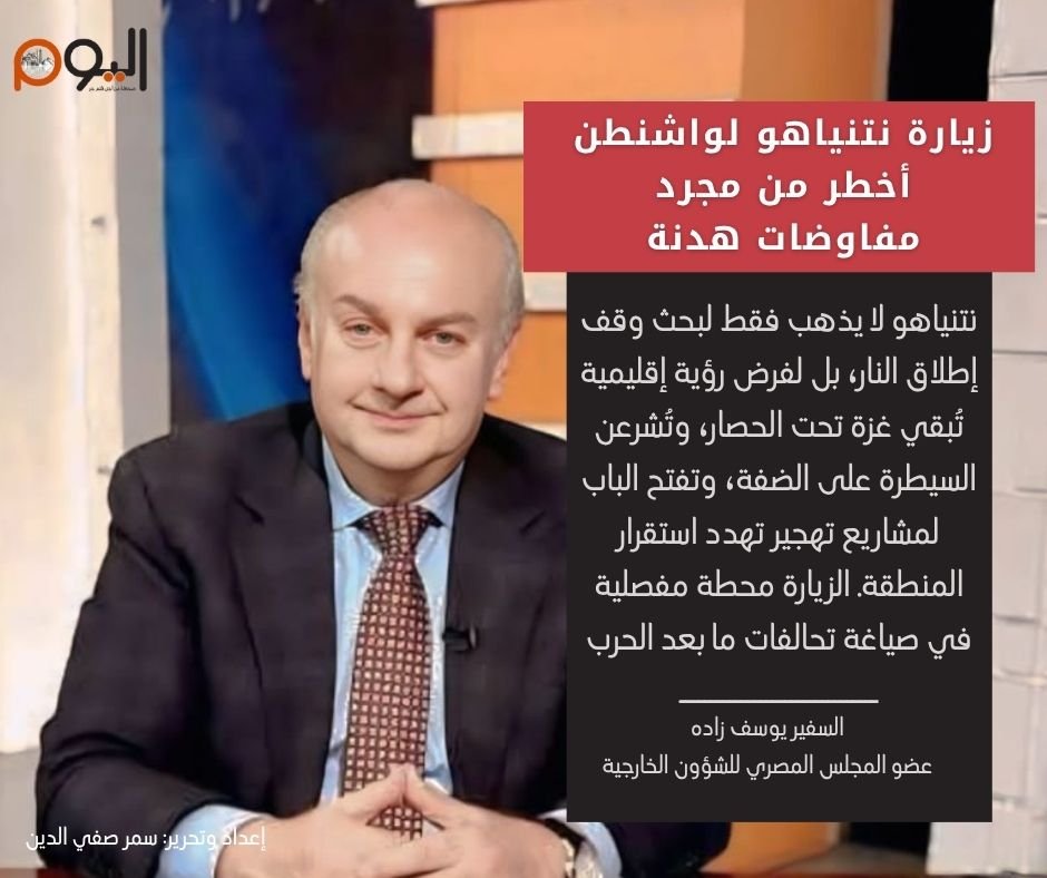 بالإضافة إلى أن زيارة نتنياهو لواشنطن، كما يراها السفير يوسف زاده، ليست فقط لحسم تفاصيل هدنة في غزة، بل لإعادة صياغة معادلة النفوذ الإسرائيلي في الشرق الأوسط بعد المواجهة مع إيران وتعثر الأهداف في غزة. لكن ما لم يتغير هو تمسك نتنياهو بخيار “عدم إنهاء الحرب”، ما يجعل التسوية مؤقتة، والهدنة هشة، والمستقبل مفتوحًا على احتمالات انفجار جديد.