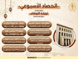 يؤكد الحصاد الأسبوعي لوزارة الأوقاف مدى نشاطها المكثف على مختلف الأصعدة، من تعزيز التعاون الدولي والمحلي، إلى تطوير الخدمات الرقمية، والاستعدادات الدينية لشهر رمضان، بما يرسخ دورها في نشر