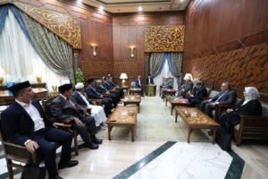 أضاف فضيلة شيخ الأزهر خلال استقباله الدكتور شفر الدين كامبو، رئيس مؤسسة السلام في العالمين الخيرية الإندونيسية والوفد المرافق له، أننا في الأزهر نحمل آلام عالمنا الإسلامي وتحدياته، ونسعى للمِّ شمل الأمة وإصلاح البيت الإسلامي من الداخل من خلال عقد حوارٍ إسلامي-إسلامي؛ لنتقدم للعالم بصوت إسلامي واحد، يمثل الجميع ويتسع للكلِّ.