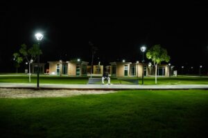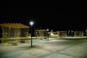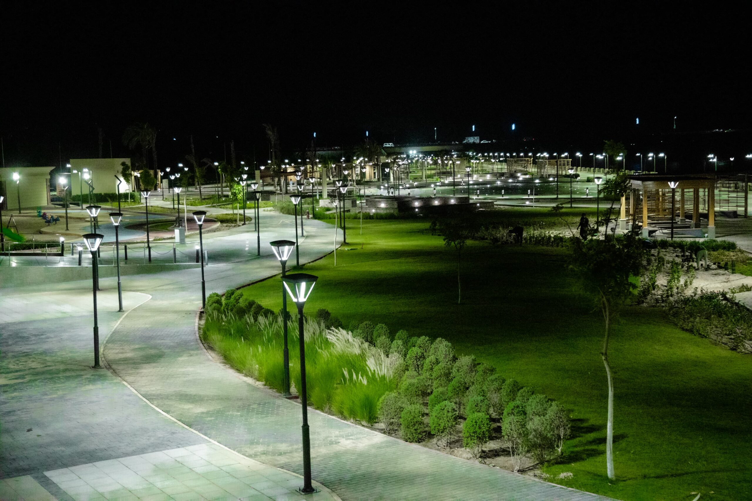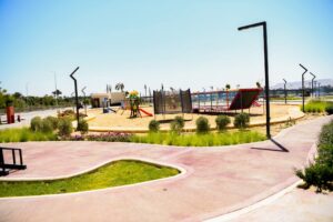 مساحات خضراء واسعة ومناطق ترفيهية، مجمع مطاعم وكافيهات وأكشاك لعرض المنتجات اليدوية والتراثية، حديقة ألعاب مخصصة للأطفال ومساحات للأنشطة المائية، تراك للدراجات يمتد لمسافة تزيد على كيلومتر، ساحة واسعة للاحتفالات وشاشة سينما مفتوحة في الهواء الطلق.