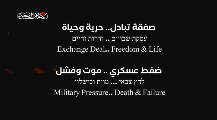 تأتي رسالة القسام ومقطعها المصور، للرد على الأسير السابق، في الوقت، الذي يوجه فيه الرئيس الأمريكي أعلى درجات التهديد، لحماس وفصائل المقاومة، لإجبارهم على قبول خطته بشأن غزة، دون مناقشة أو تفاوض، معلنا فتح الأبواب للاحتلال ليفعل ما يحلو له في القطاع، وكأن المقاومة تقول في رسالة ضمنية، قول الشاعر العربي “أبي الطيب المتنبي”: “قَتَلَ الأَحرارَ كَالعَفوِ عَنهُمُ… وَمَن لَكَ بِالحُرِّ الَّذي يَحفَظُ اليَدا”.