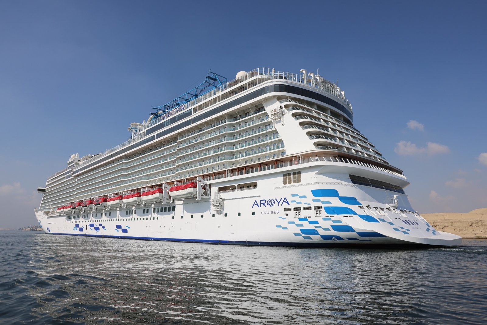 وترفع السفينة “AROYA” علم جزر المارشال ويبلغ طولها 335 متراً، وعرضها 38 متراً، وتستطيع أن تحمل على متنها 3362 سائح بالإضافة إلى 1620 من طاقم السفينة.