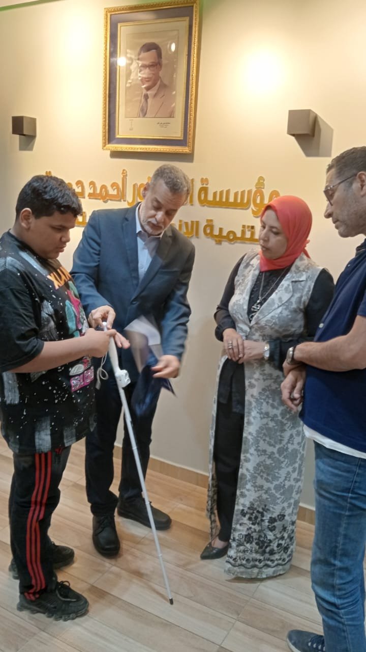 وقد شارك في تسليم العصا الإلكترونية الشيماء عبد المعطي، وكيل مديرية التضامن الاجتماعي، والدكتور ياسر أحمد جمعة، مؤسس ورئيس مجلس أمناء المؤسسة، وولاء أحمد سالمان، مدير إدارة الجمعيات الأهلية، وذلك بمبادرة إنسانية تهدف إلى دعم الطالب محمد، ابن مركز منفلوط، ورفع كفاءته في الحركة والاستقلالية.