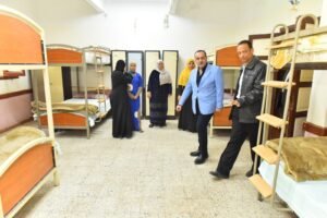 وشملت الجولة تفقد ورش الأشغال اليدوية والخياطة والتربية الفنية والنسيج، بالإضافة إلى معامل الحاسب الآلي، واطلع المحافظ على نماذج من الأعمال الفنية والمنسوجات التي نفذتها الطالبات، والتي عكست مستوى متميزًا من التدريب وتنمية المهارات. وأشاد بالجهود المبذولة في تأهيل الطالبات وإعدادهن لسوق العمل، بما يسهم في دمجهن وتمكينهن اقتصاديًا واجتماعيًا.
