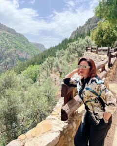 وكتبت إلهام شاهين، عبر حسابها الشخصي على موقع التواصل الاجتماعي إنستجرام: “فوق الجبل على إرتفاع 1400 متر فوق سطح الأرض في وادي القديسين تشعر أنك قريب جدا من السماء وتتوحد مع الكون لتعيش حالة وجدانية روحانية، وتدعو الله من قلبك أن يهدينا جميعا للخير والمحبة والسلام ويؤلف بين قلوب كل البشر، لبنان”.