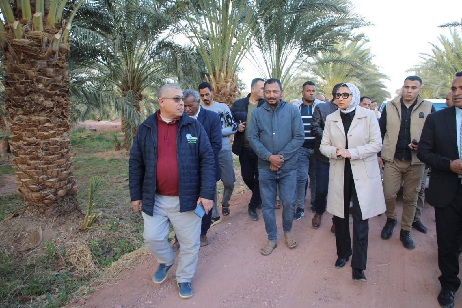 واطّلعت المحافظ على الموقف التنفيذي للمشروع المقام على مساحة إجمالية تبلغ نحو ٢٢٨ فدانًا بالاعتماد على الطاقة الشمسية، حيث تم استصلاح وزراعة ما يقارب 160 فدانًا بعدد يتجاوز 11 ألف فسيلة نخيل، فضلاً عن التوسع في الزراعات غير التقليدية ومن بينها محصول السمسم بما يرفع من القيمة المضافة للمشروع.