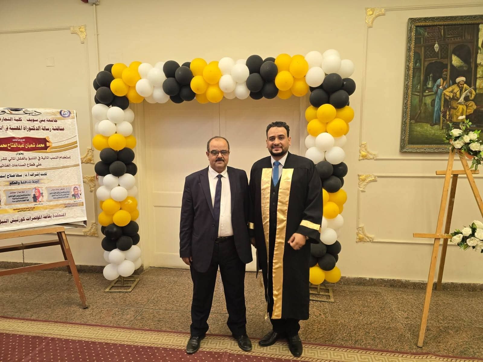 يسرنا تهنئة الدكتور محمد سيد حافظ، مدير إدارة المراجعة المحلية بمنطقة بريد سوهاج، بمناسبة مناقشته وحصوله على درجة الدكتوراه في إدارة الأعمال يوم الأحد الموافق 9-11-2025 من جامعة بني سويف بتقدير امتياز مع مرتبة الشرف
