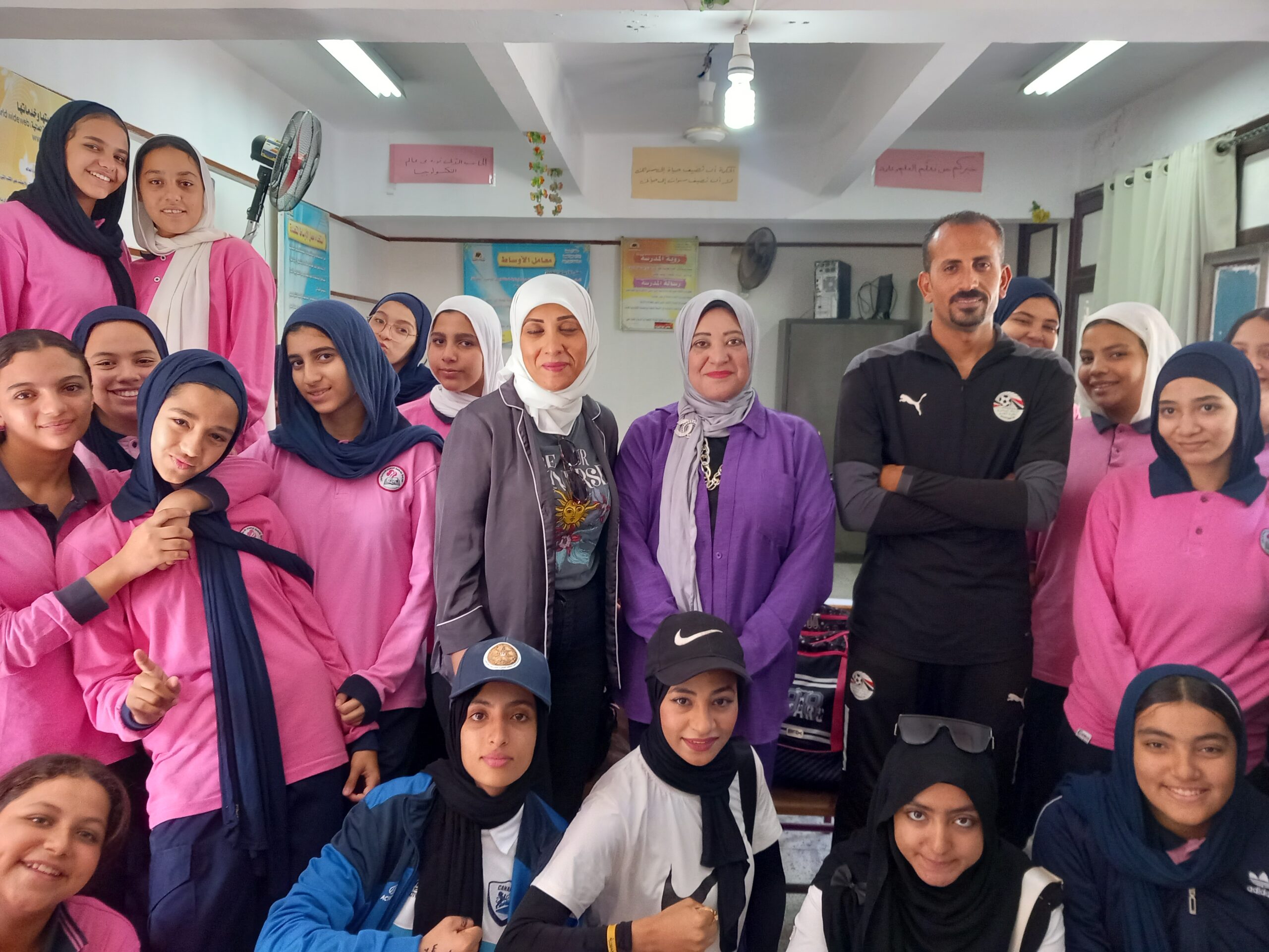 فوزية السروجي والتي رحبت باللقاء وحنان عاشور مسئول المتابعة بالتربية والتعليم وأسامة داوود المشرف العام بالمدرسة وبحضور عدد من طالبات المرحلة الإعدادية والتي حرصن علي إلتقاط الصور التذكارية بفناء مدرسة فاطمة الزهراء.