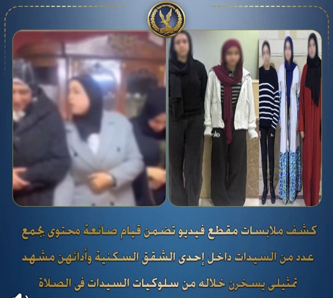 فى إطار كشف ملابسات مقطع فيديو تم تداوله بمواقع التواصل الإجتماعى تضمن قيام صانعة محتوى بجمع عدد من السيدات داخل إحدى الشقق السكنية وأدائهن مشهد تمثيلى يسخرن خلاله من سلوكيات السيدات فى الصلاة.