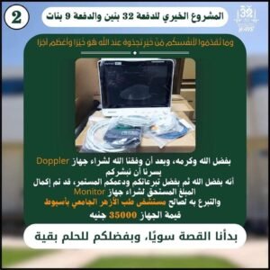 حيث تبرعوا بجهاز “دوبلر” لصالح قسم جراحة الأوعية الدموية وجهاز “مونيتور” لصالح وحدة غسيل الكلى، وذلك في لمسة وفاء ومساهمة منهم في رفع المعاناة عن المرضى المترددين على مستشفيات جامعة الأزهر بأسيوط.