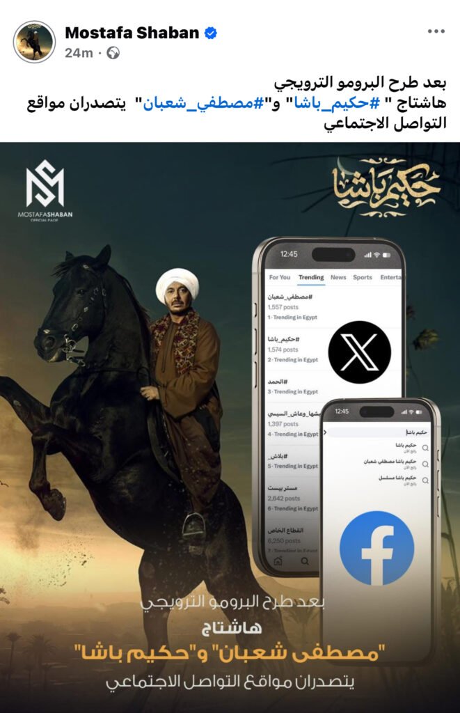 احتفل الفنان مصطفى شعبان بتصدر مسلسله حكيم باشا تريند منصات مواقع التواصل الاجتماعي وذلك قبل عرضه ضمن مسلسلات رمضان 2025.