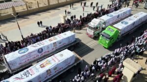 محافظ الوادي الجديد يدشن انطلاق قوافل المساعدات المتجهة إلى غزة