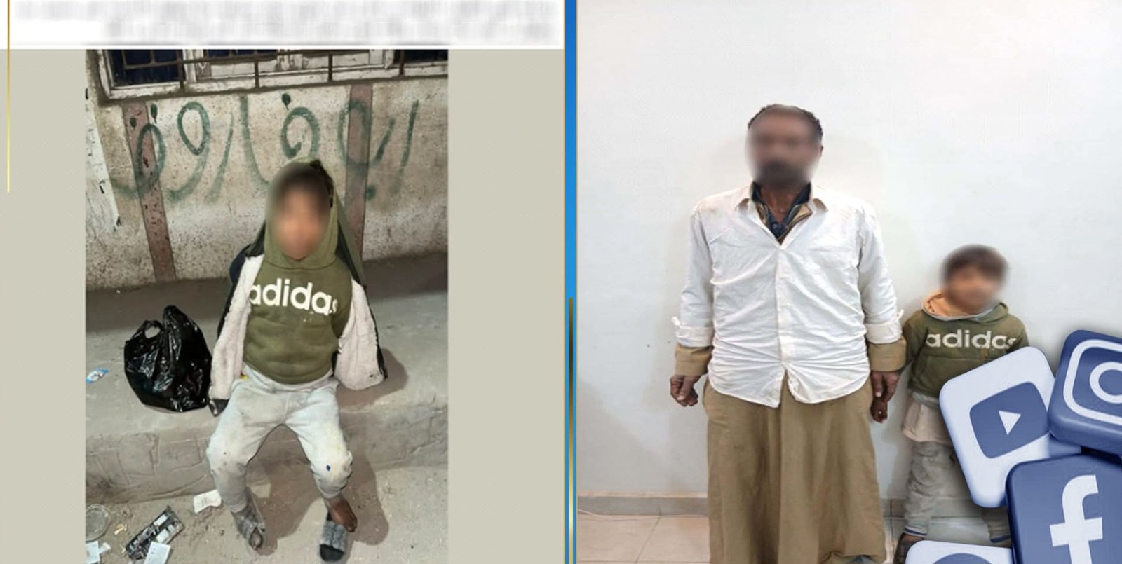 وبالفحص، تمكنت الأجهزة الأمنية من تحديد الطفل المشار إليه وضبط والده، وهو عامل مقيم بدائرة مركز شرطة مطاي، وبمواجهته أقر بقيامه بترك نجله بأحد الشوارع بدائرة مركز شرطة سمالوط شرق، بغرض استجداء المارة.