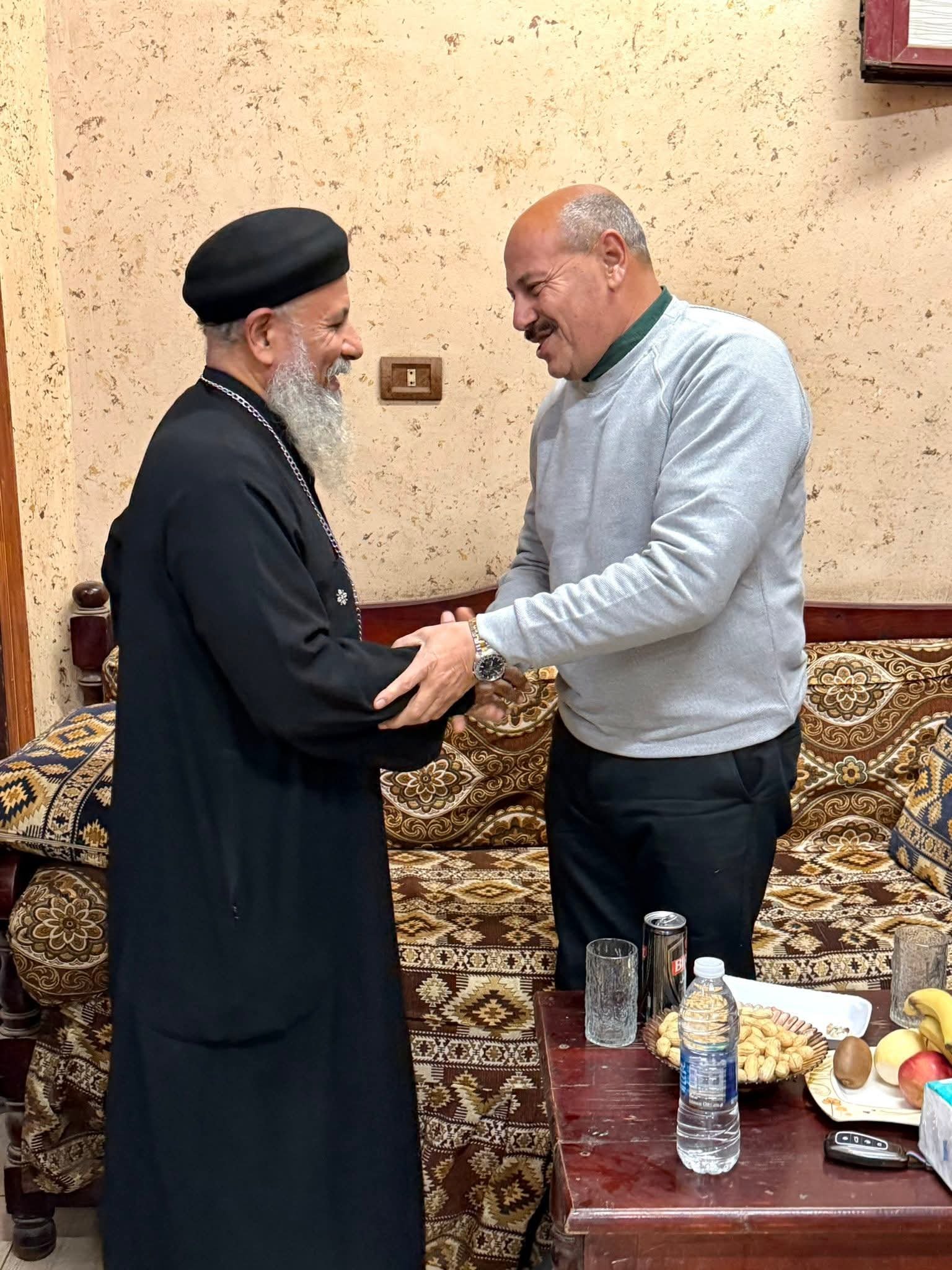 النائب مجاهد نصار يستقبل القمص حبيب جرجس ووفداً من الأخوة الأقباط بميت نما لتلقي التهنئة بعيد الفطر المبارك